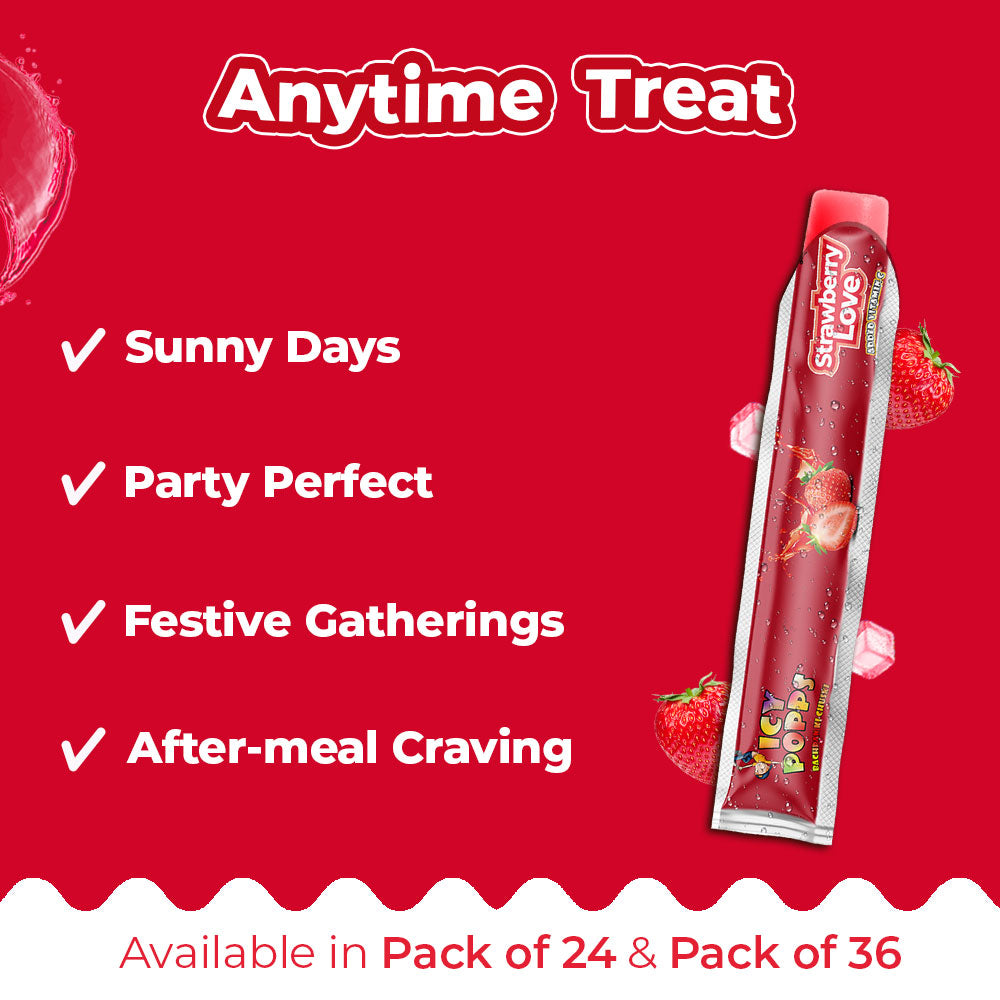 Strawberry Love Icy Popps | Sweet & Refreshing Frozen Treat | 24 Pack
